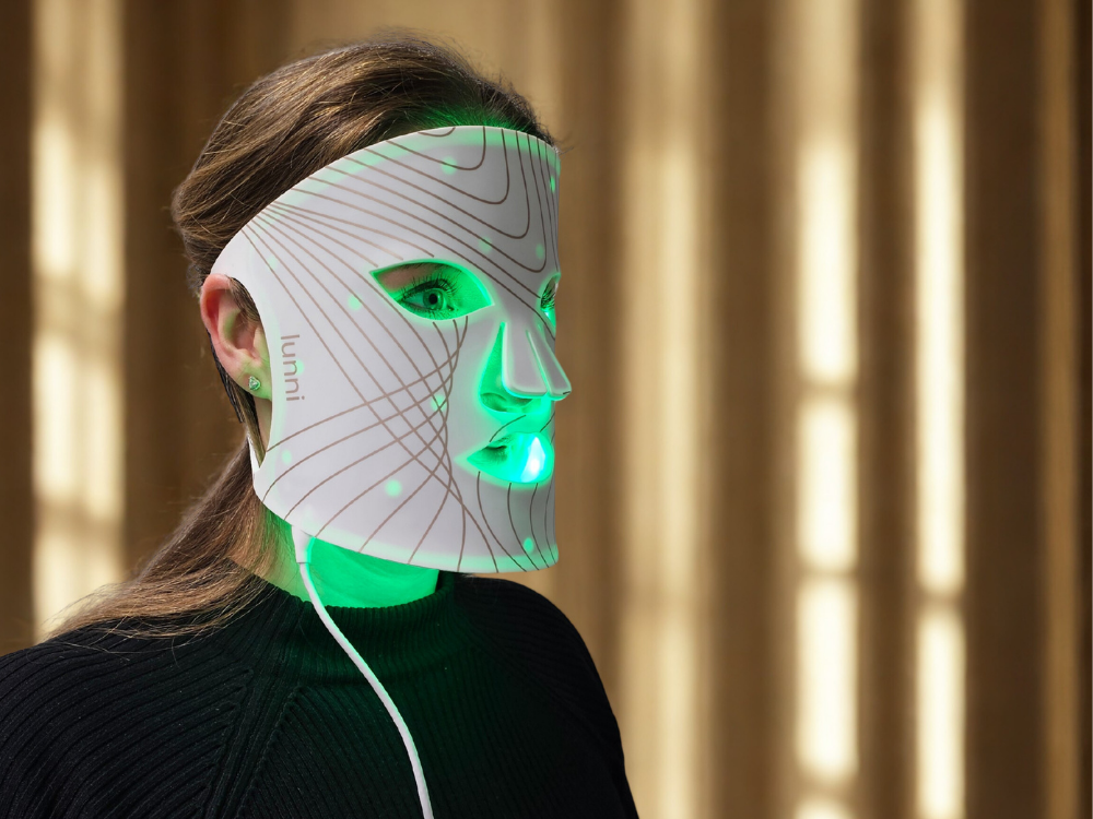 This LED light therapy mask uses eight light settings, including near-infrared, to target wrinkles, acne, pigmentation, and overall skin vitality – delivering safe, non-invasive treatments with built-in eye protection.